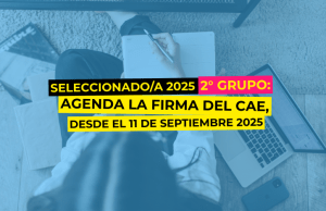 Los/las seleccionados/as podrán escoger el día, rango horario y lugar donde prefieren firmar el contrato del Crédito con Garantía Estatal (Crédito CAE), DESDE EL JUEVES 11 DE SEPTIEMBRE 2025, en www.creditocae.cl. Revisa las indicaciones para agendar el trámite, AQUÍ. ¡ATENCIÓN! ¿Eres del 1° GRUPO y no alcanzaste a agendar tu firma? ¡También podrás hacerlo en este período!