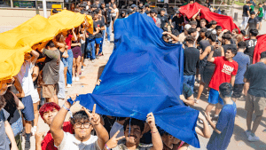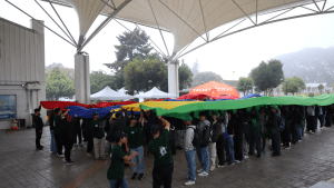 A continuación, se llevó a cabo el rito institucional, donde los/las estudiantes fueron organizados en cuatro filas, y en la medida que se iban pasando y extendiendo las telas de colores institucionales sonaba el himno de la universidad. Después de este rito, los estudiantes formaron un círculo grande y se ubicó el árbol de madera para realizar la actividad del “Árbol de los Deseos USM”, donde cada estudiante escribió un deseo o anhelo para el año 2025 en una hoja que luego colgaron en el árbol.